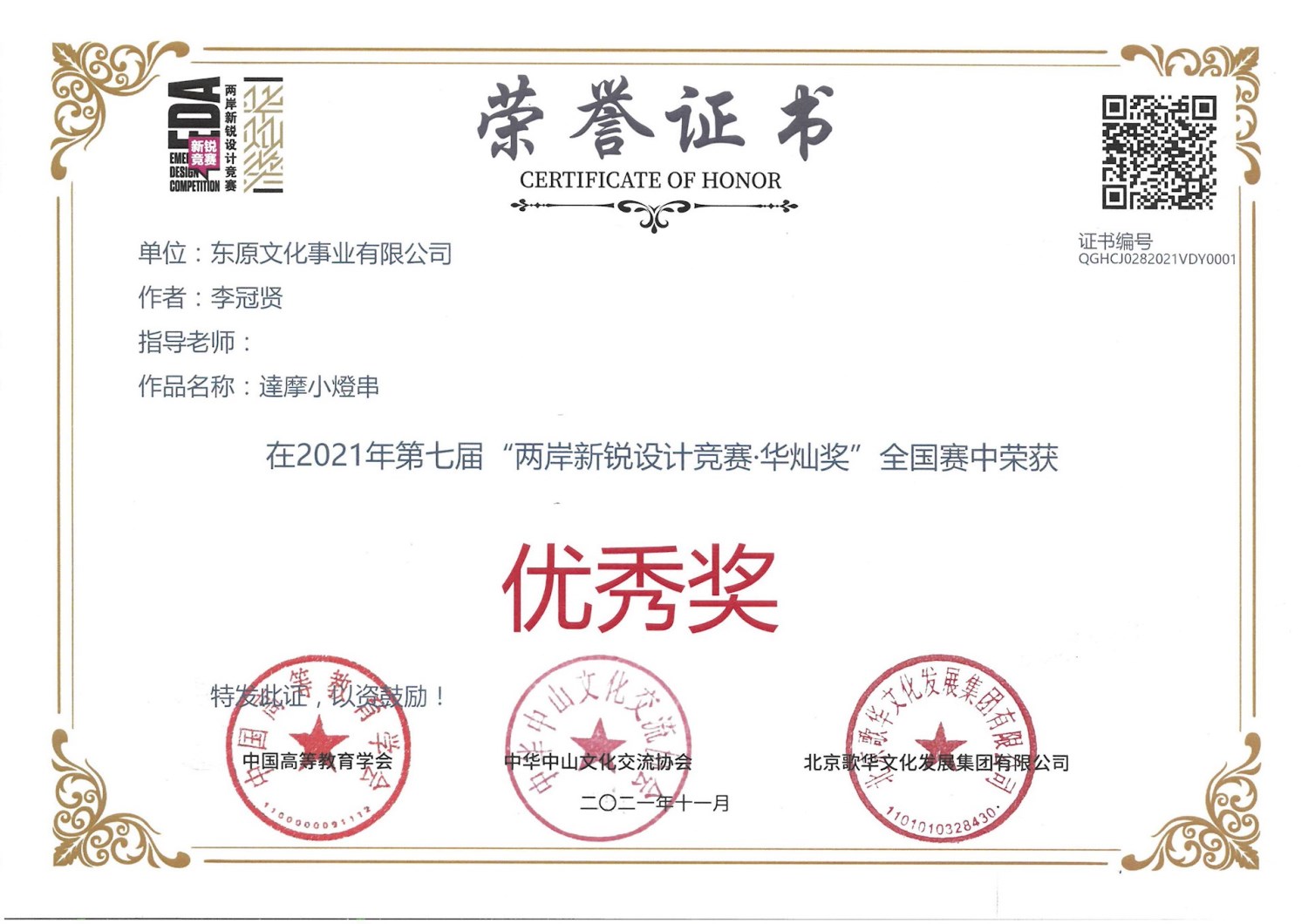 2021年第七屆兩岸新銳設計競賽華燦獎 東原文化 獲得30獎項