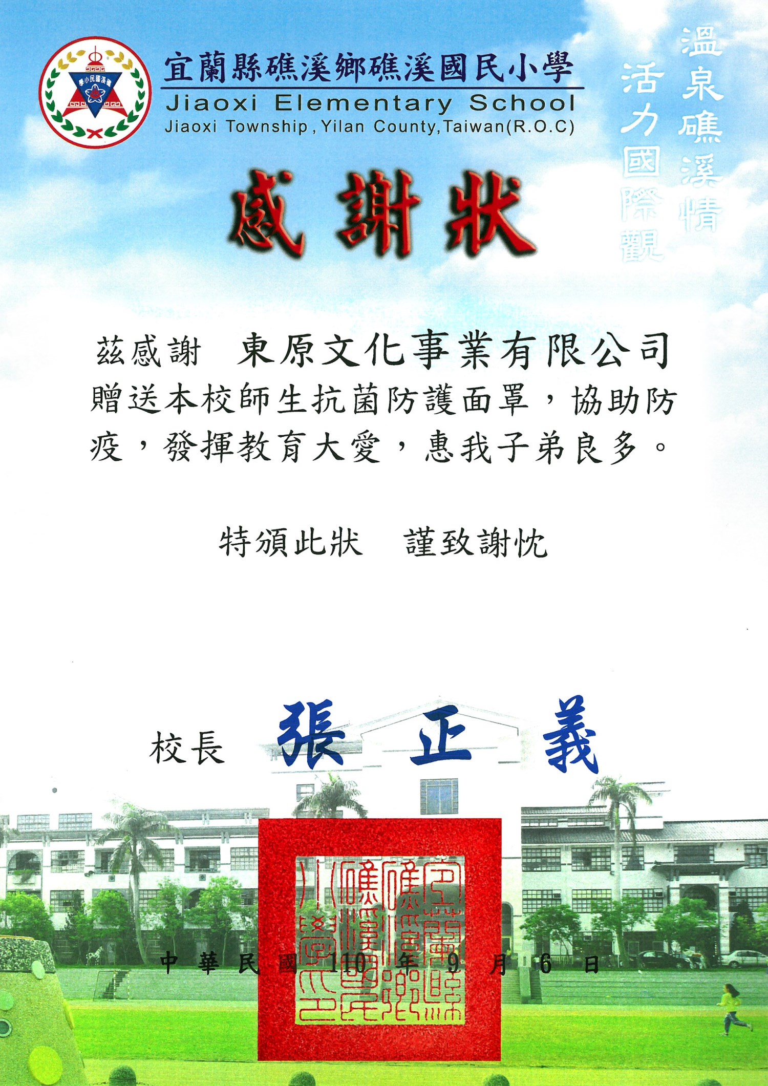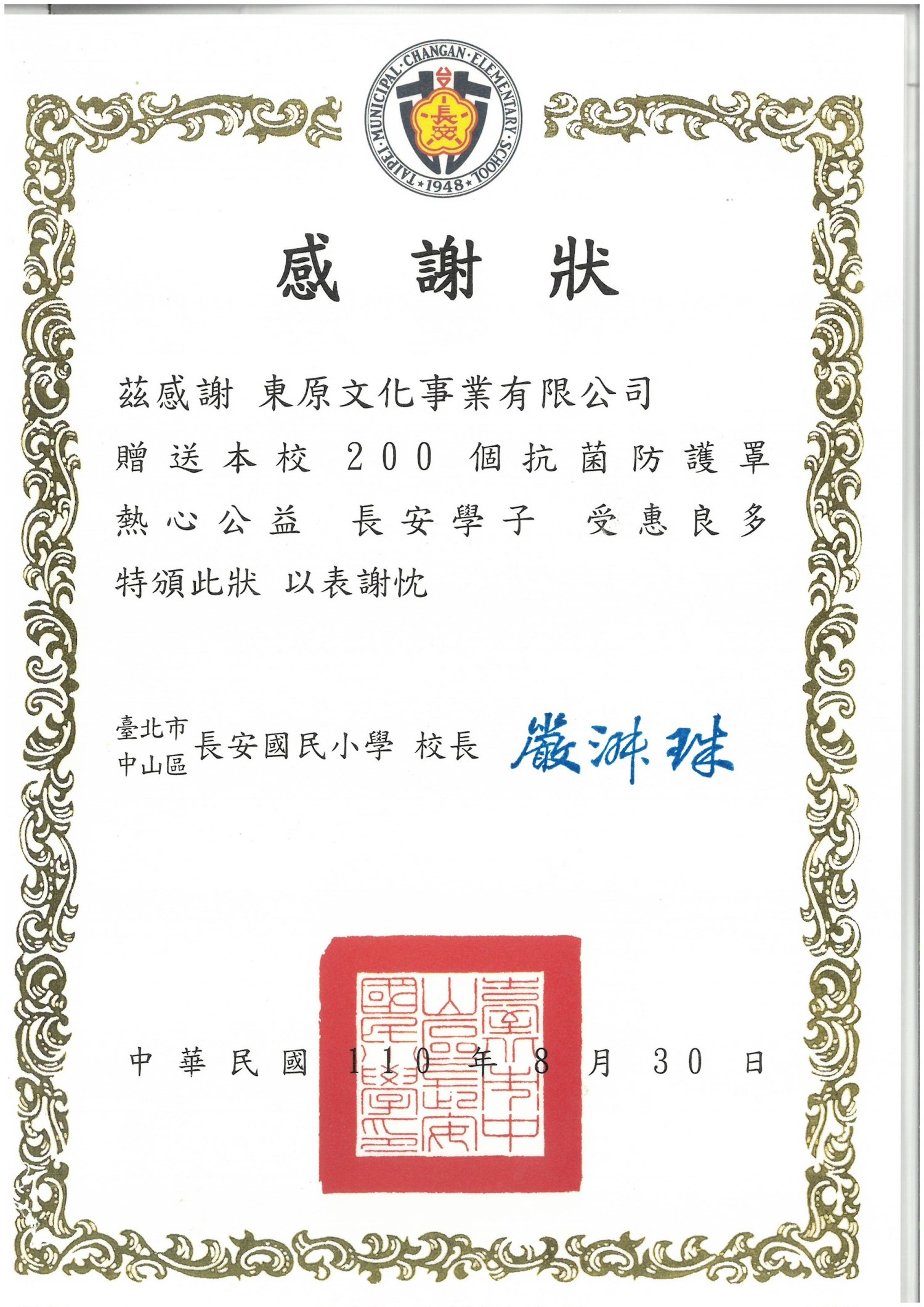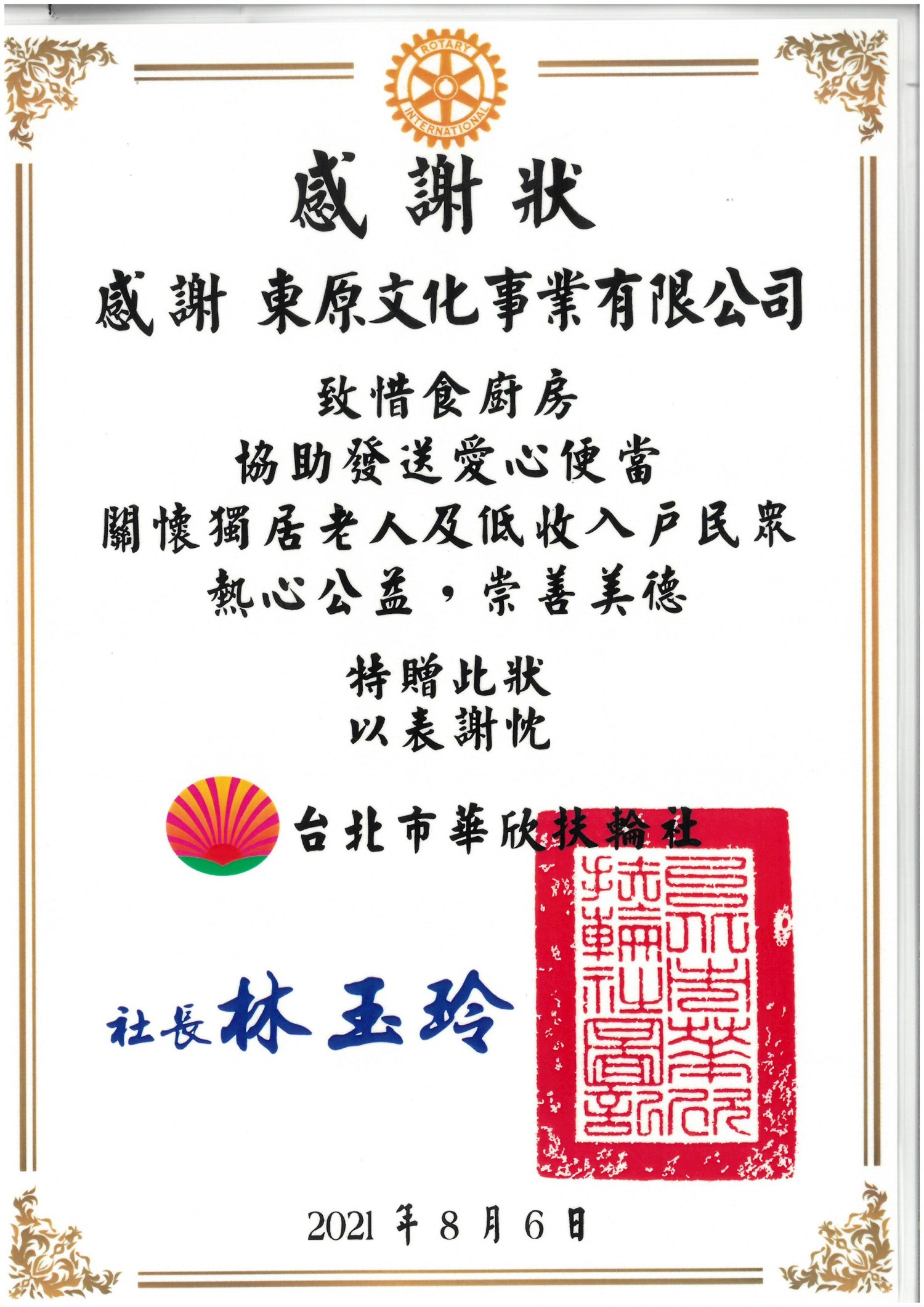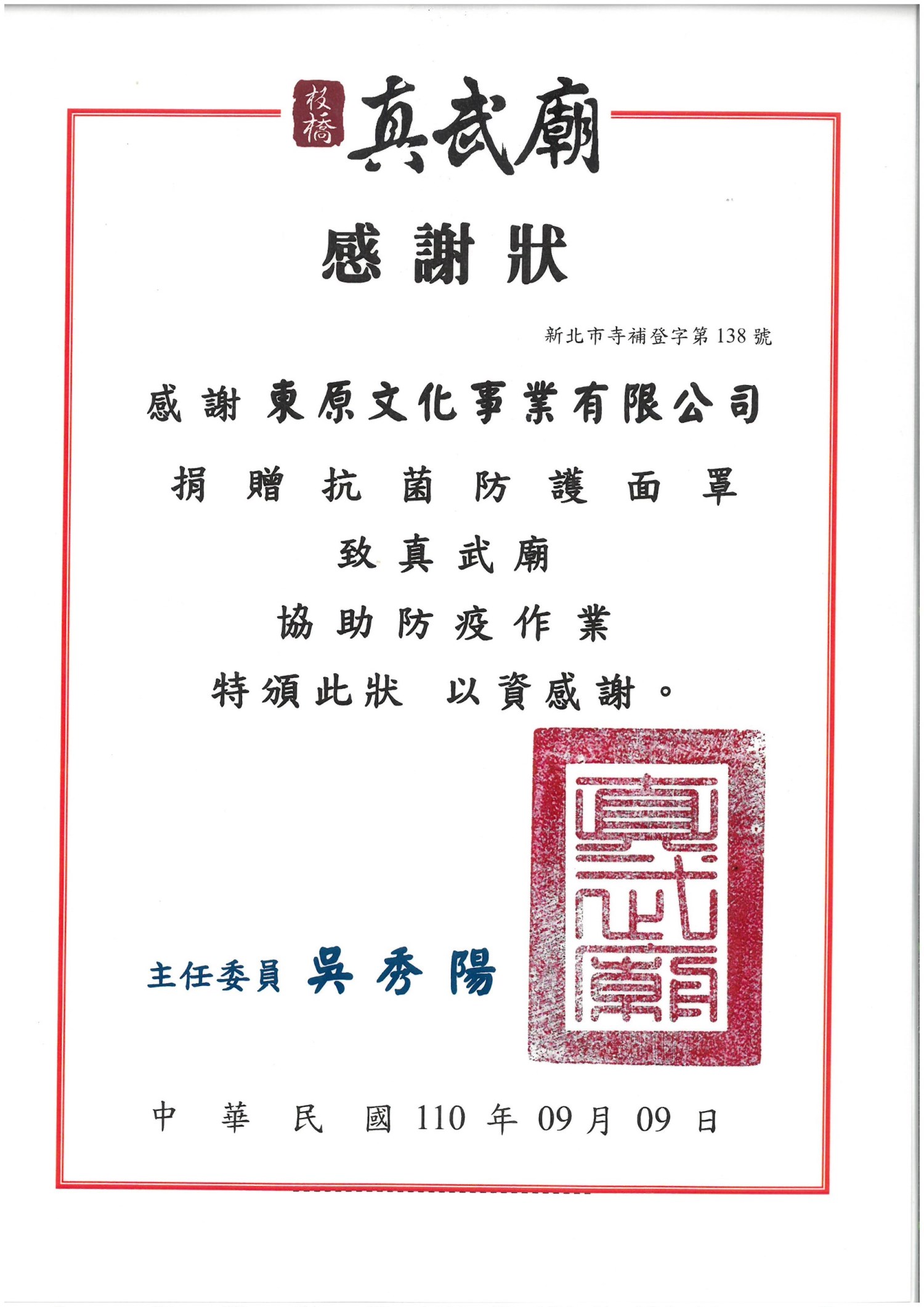 東原文化王總監 捐贈多數「抗菌防護面罩」給各學校、醫院等等,並也協助發送「愛心便當」關懷獨居老人及低收入戶民眾