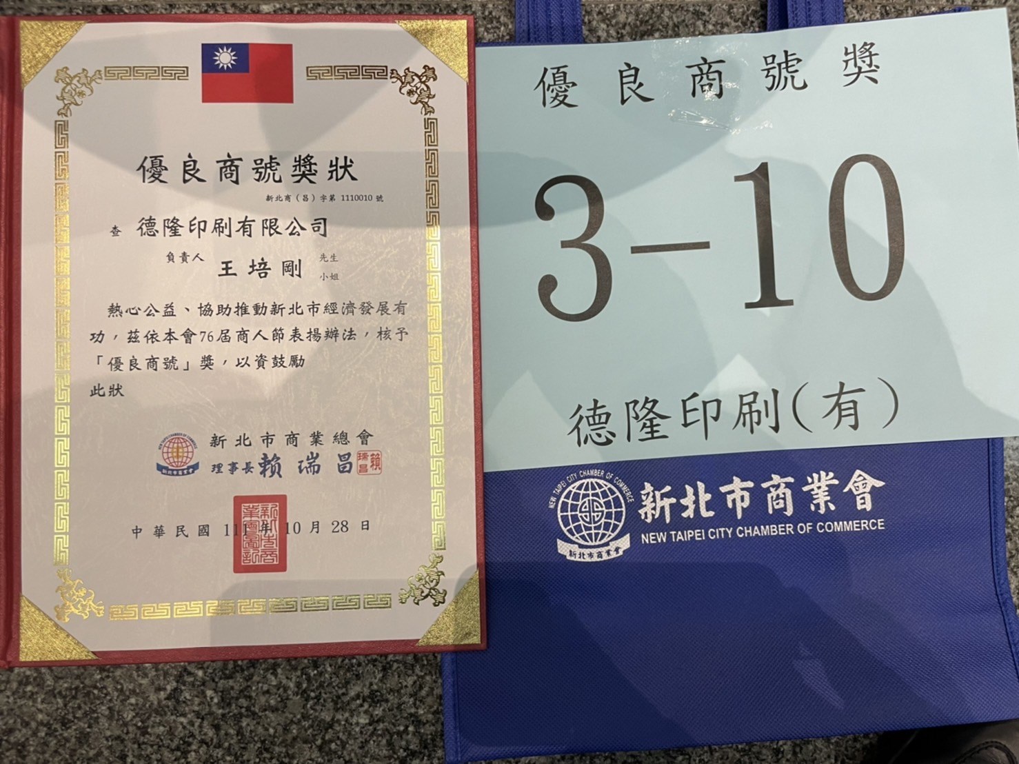 (德隆)新北市商人節表揚大會獲頒優良廠商榮譽表揚111/10/28