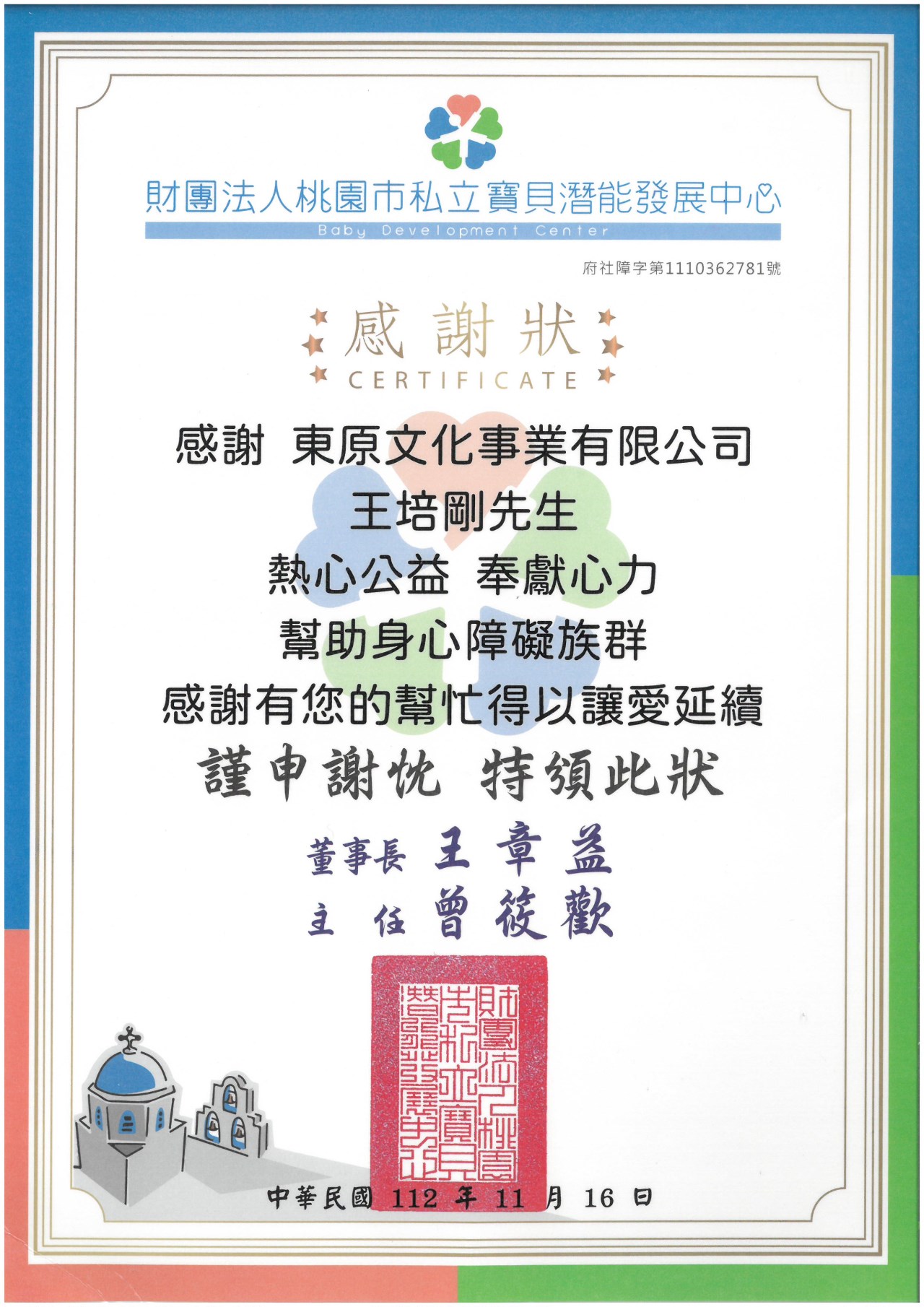 捐愛心物資-桃園市私立寶貝潛能發展中心
